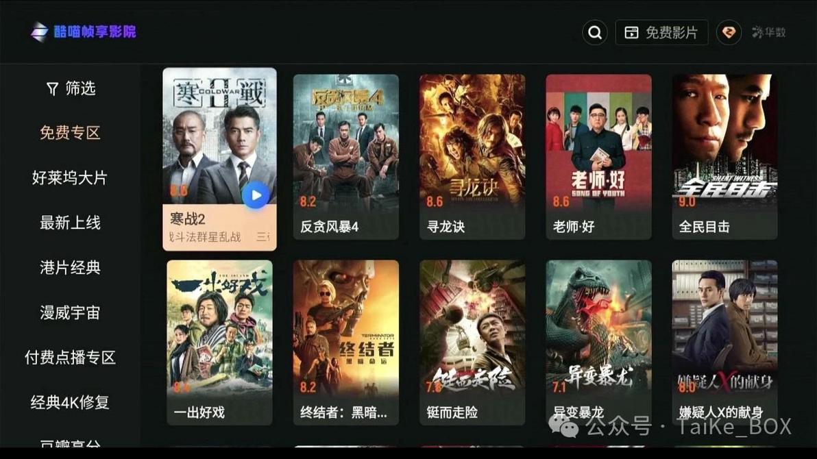 如果你家里有支持杜比视界和DTS的电视或其他设备,想体验一下超高码率,极致音效的可以装这款软件试试,这款软件是酷喵刚推出的,现在免费内容还挺多的,至少几百部是有的,里边不乏很多经典影片,快来点亮你的杜比视界杜比全景声和DTS吧