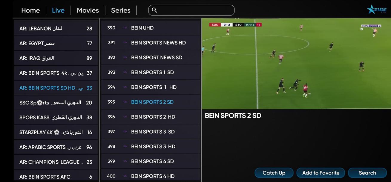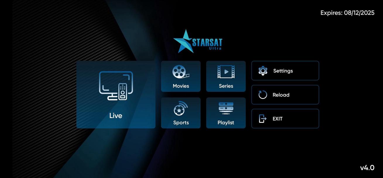 • Starsat ultra IPTV APK, is a popular IPTV application offering streaming access to a wide variety of content, including channels, movies, series, and more, in various quality formats such as HD, UHD 4K, and 3D.