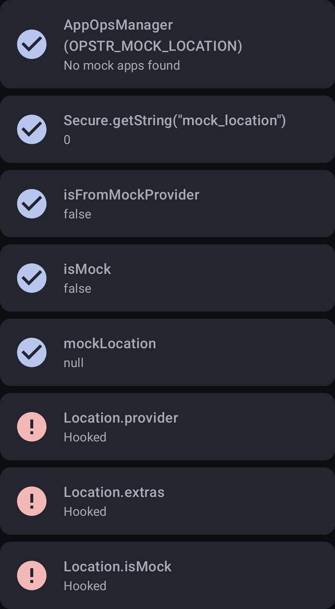 - It checks all installed packages for mock location privileges (AppOpsManager).