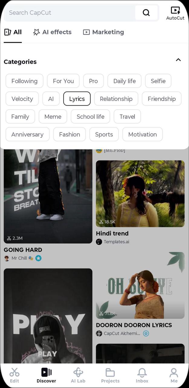 CapCut is a user-friendly video editing app that is perfect for both beginners and professionals. Its templates come with ready-made effects, transitions and music, so you can easily and quickly give a professional look to your videos. Templates are available for every theme and occasion, like travel, lifestyle, fashion and trending challenges.