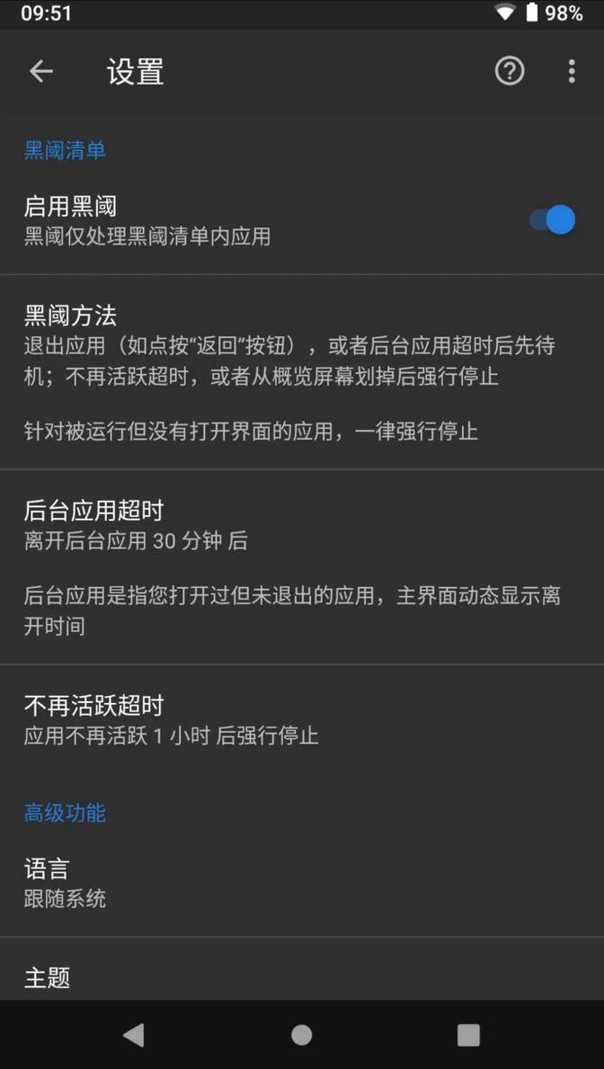 黑阈核心为安卓设备提供免Root的后台精细化管控,可精准拦截应用自启动与跨应用关联唤醒,能对后台应用实现智能休眠,超时或手动划除后自动强制停止运行,从根源减少系统资源占用,实现省电、降热并提升设备运行流畅度;同时支持自定义白名单,保障微信、邮箱等重要应用的后台同步与通知功能不受影响,还能为单个应用设置专属后台策略,也可实时监控各应用的后台启动记录、唤醒来源,让用户清晰掌握应用资源消耗情况,按需调整管控规则。