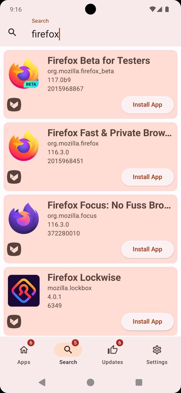 Search Sources: Find new apps to install from APKMirror, Aptoide, F-Droid, IzzyOnDroid, APKPure, GitLab, GitHub and Google Play.