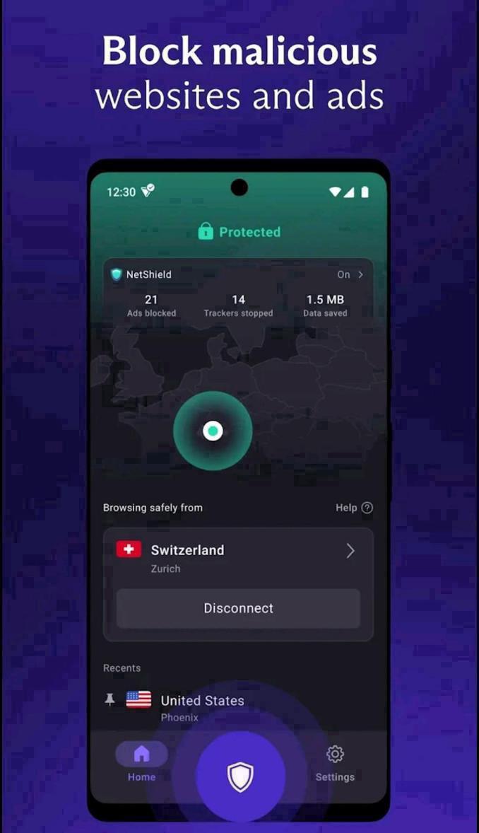 • Ad blocker (NetShield): a DNS filtering feature that protects you from malware, blocks ads, and prevents website trackers from following you across the web