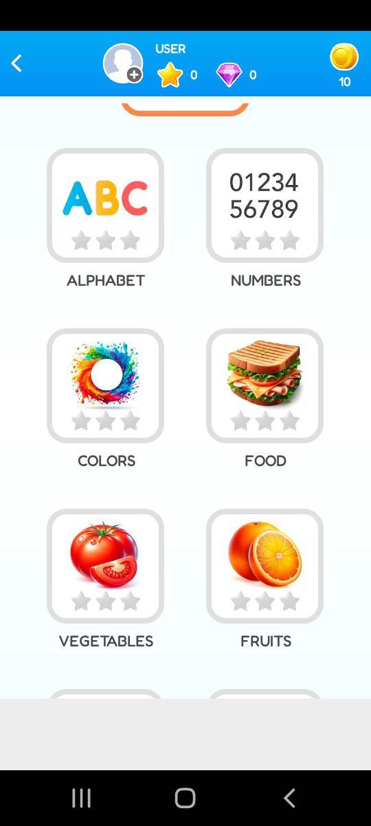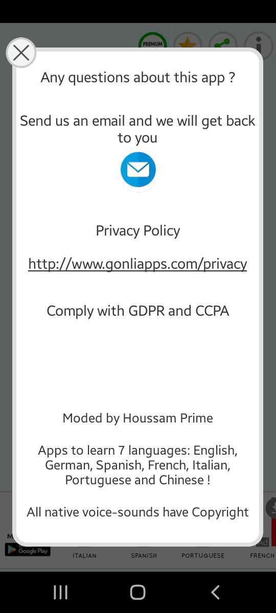 It covers 36 essential topics like alphabet, numbers, colors, animals, and verbs with pictures and voice.