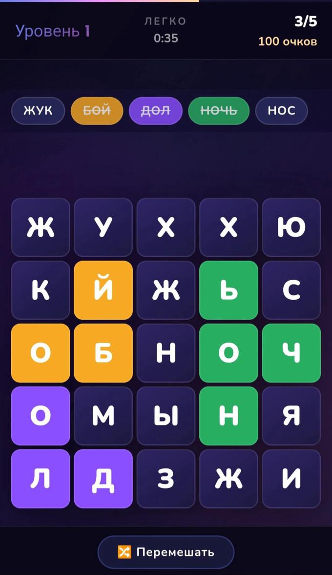 ● Система комбо — получайте бонусные очки за последовательное нахождение слов