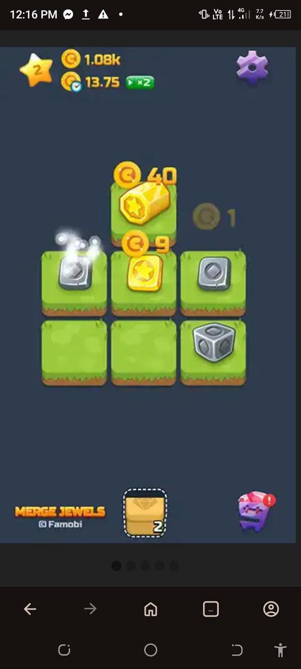 Merge Jewels The “Merge” genre is basically a spin-off of the classic Match 3 formula. But instead of trying to match three items of the same color or shape, in Merge games you combine two similar structures to a new larger and more valuable item. In our case you start to merge metal coins into bigger coins that will turn into gold and ultimately - after enough merging - into big shiny jewels of different colors. All items on your deck automatically earn money, so the more valuable the item is, the more money you will make. And this money will enable you to buy more valuable jewels instead of putting hard merging work into creating them. This means you don’t have to start by merging the least valuable metals and save a few steps on the way. Every 10 seconds a new jewel will appear on your deck, as long as there is space for them. However you can speed up the process by tapping on the respective icon on the right. While you merge jewels and earn more money you will also upgrade your deck and receive more space to place your jewels. Basically all you do is tap or click on the screen, merge jewels, earn currency, tap some more, merge bigger jewels, get more money, tap even harder, merge the biggest diamonds you have ever seen and earn the sweet reward of even more money! It’s a never ending spiral of tap and reward, and it is ultimately satisfying.