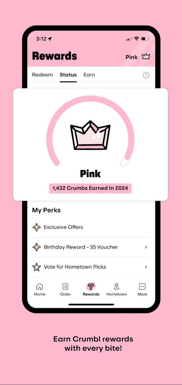 - Ganhe migalhas de fidelidade ao solicitar coleta, entrega e até mesmo catering. Quando você atingir 100 Loyalty Crumbs, isso será convertido em US$ 10 em Crumbl Cash que você pode usar para retirada, entrega local ou remessa nacional.