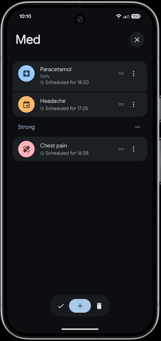 Быстрое редактирование: удерживайте любую карточку, чтобы мгновенно отредактировать ваши лекарства или события (НОВИНКА!)