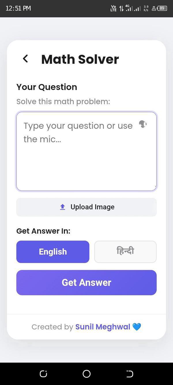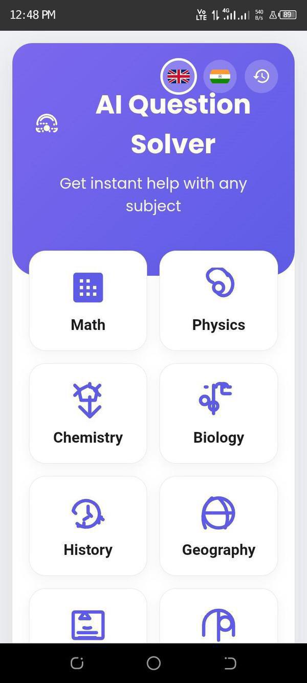 **AI Question Solver** рдПрдХ рд╕реНрдорд╛рд░реНрдЯ рдФрд░ рдЙрдкрдпреЛрдЧрдХрд░реНрддрд╛-рдорд┐рддреНрд░ рдРрдк рд╣реИ, рдЬреЛ рдЫрд╛рддреНрд░реЛрдВ рдХреЛ рд╣рд░ рд╡рд┐рд╖рдп рдореЗрдВ рддреБрд░рдВрдд рд╕рд╣рд╛рдпрддрд╛ рдкреНрд░рджрд╛рди рдХрд░рддрд╛ рд╣реИред рдЪрд╛рд╣реЗ рд╡рд╣ **рдЧрдгрд┐рдд**, **рд╡рд┐рдЬреНрдЮрд╛рди**, **рдЗрддрд┐рд╣рд╛рд╕**, **рднреВрдЧреЛрд▓**, рдпрд╛ **рднрд╛рд╖рд╛** рд╣реЛ тАФ рдпрд╣ рдРрдк рдЖрдкрдХреА рдкрдврд╝рд╛рдИ рдХреЛ рдЖрд╕рд╛рди рдмрдирд╛ рджреЗрддрд╛ рд╣реИред