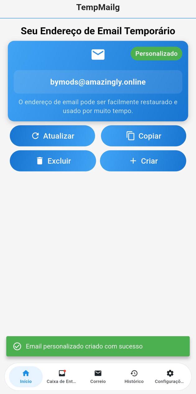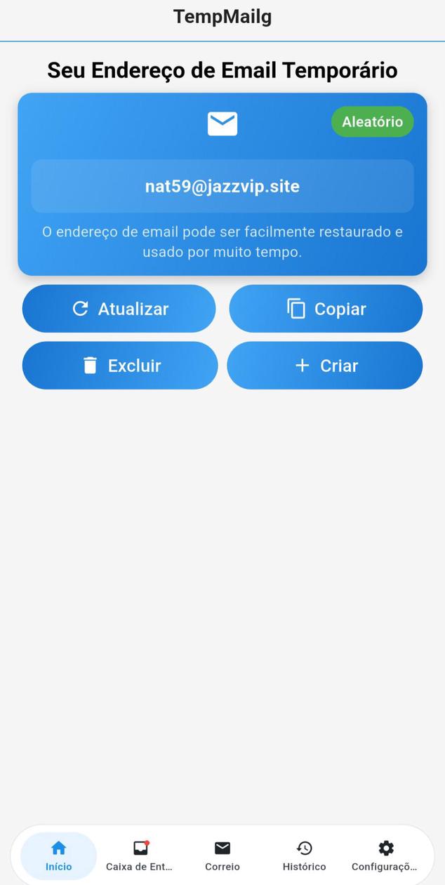 O aplicativo Temp Mail permite criar endereços de e-mail instantâneos.