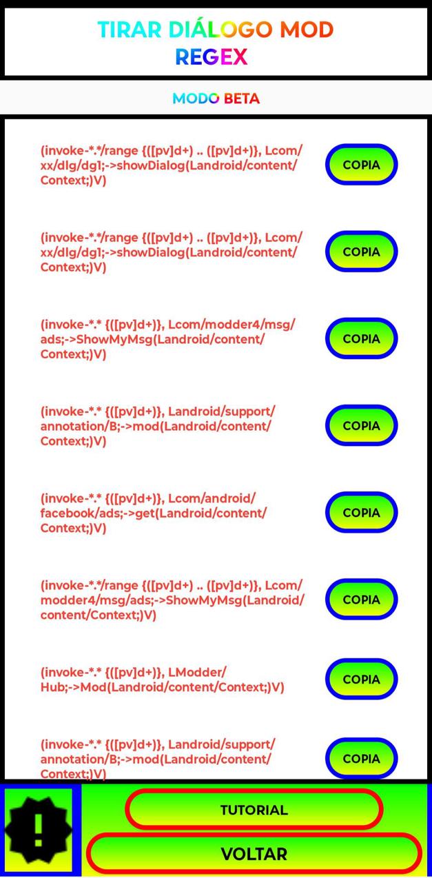 1. Esse aplicativo tá no modo beta e foi criado pelo Sketchware. 2. Esse aplicativo é para simplesmente facilitar o regex usando MT manager oficial ou Mod. 2. Esse aplicativo é ativador de prêmio de qualquer app, faz regex pelo MT manager oficial ou Mod Apk, do básico ao avançado. 3. esse aplicativo foi feito com muita simplicidade para nós mods usar no dia-dia. 4. aplicativo simples mas com facilidade de usar sem erro ou difícil. 5. obrigado por abaixar esse aplicativo.