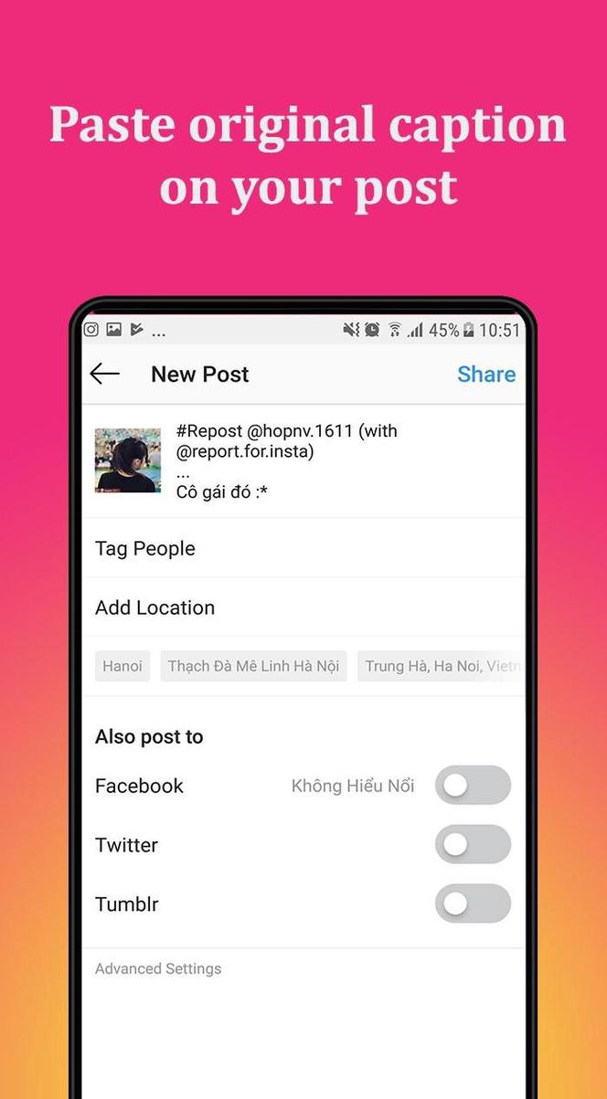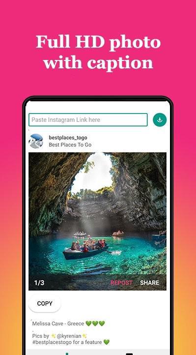 4. Copy the original caption in the clipboard automatically, you can easily paste the original caption to your Inst post.