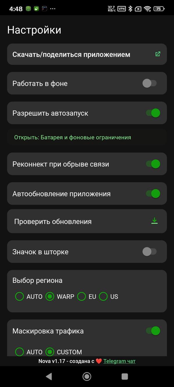 Приложение ориентировано на реальные нестабильные сети, где условия могут меняться в процессе подключения: Nova умеет адаптироваться к смене сети, подбирать удачные конфигурации, использовать резервные маршруты и сохранять рабочие варианты для следующих запусков.