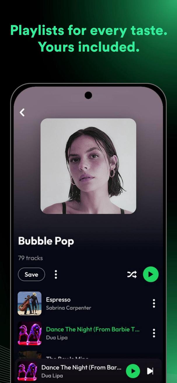 • Curated playlists for every vibe
