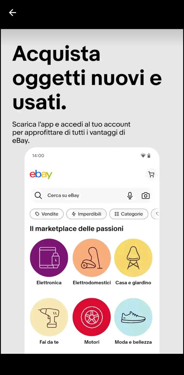 Grazie all'app eBay, hai il mercato globale alla portata del tuo dispositivo, rendendo ogni aspetto dello shopping e delle tue vendite più semplice e sicuro che mai. I nostri vantaggi: