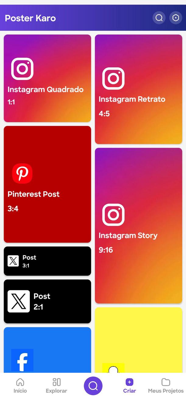 Múltiplas opções de exportação: Compartilhe seus designs diretamente nas redes sociais ou baixe-os para impressão.