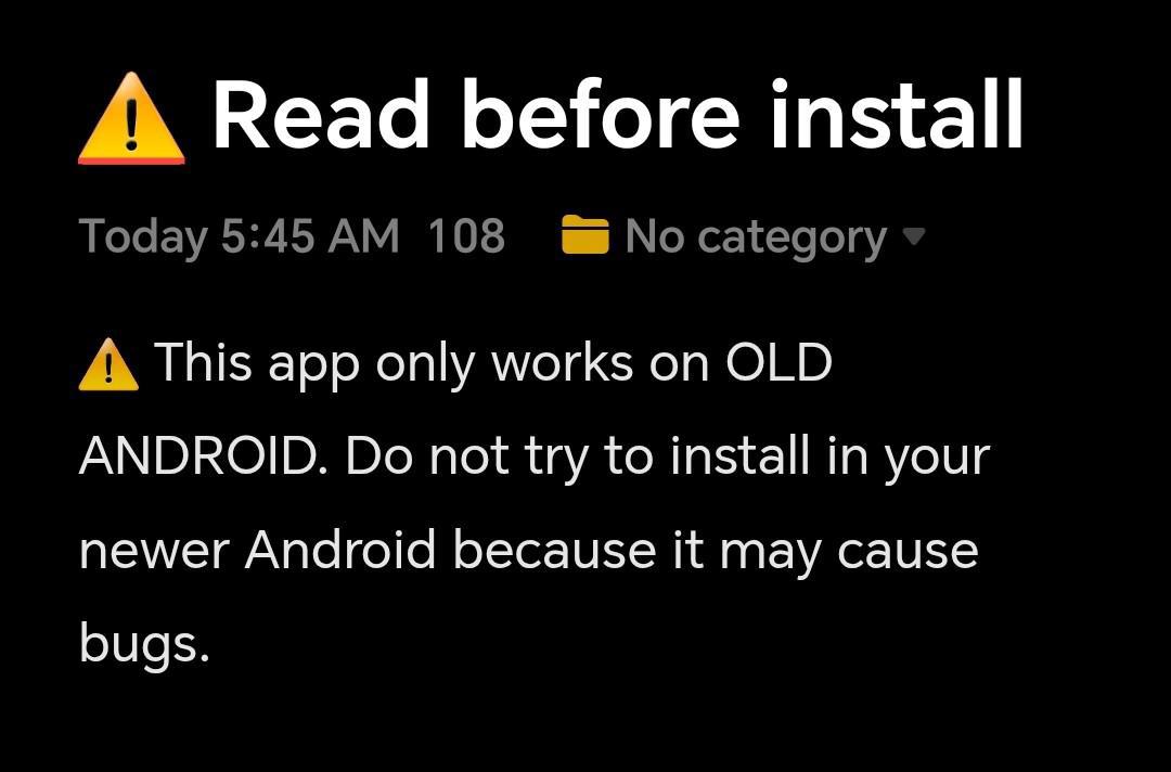 ⚠️ This app only works on OLD ANDROID. Do not try to install in your newer Android because it may cause bugs.