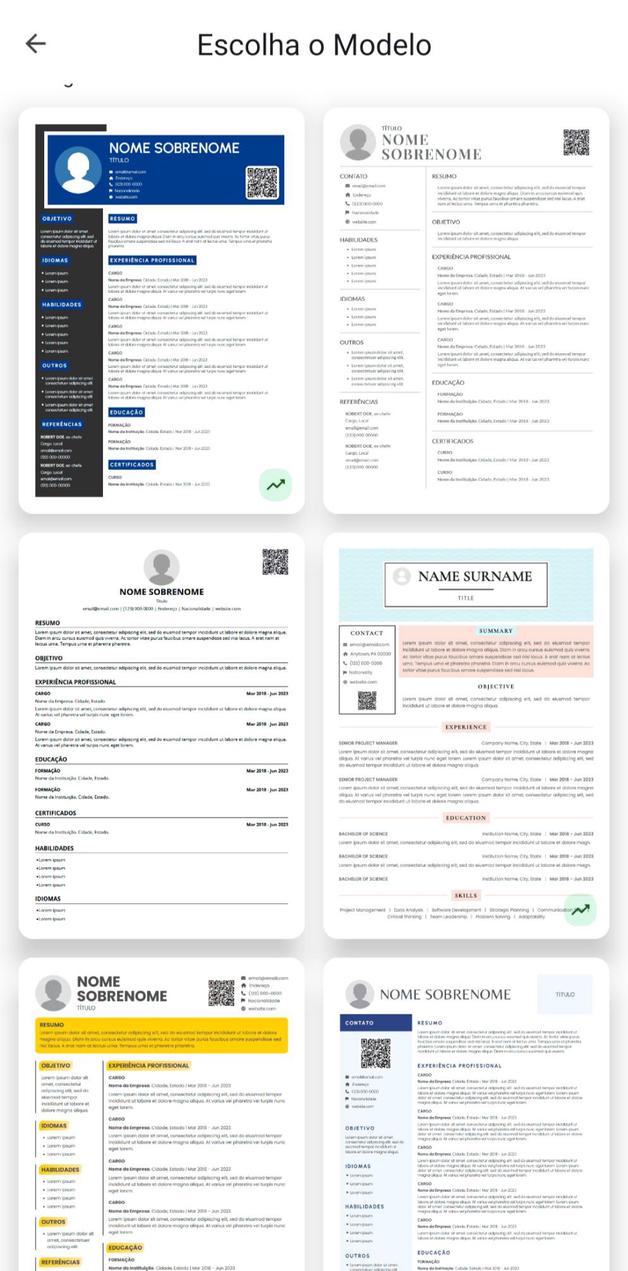 Múltiplos Modelos: Acesso a uma variedade de modelos de currículo únicos e profissionais.