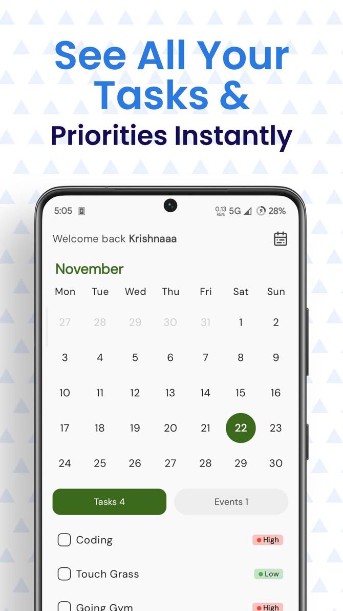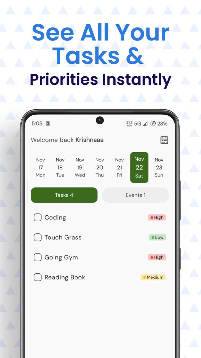 - Calendar View: Seamlessly add and manage tasks or life events in an intuitive calendar interface.