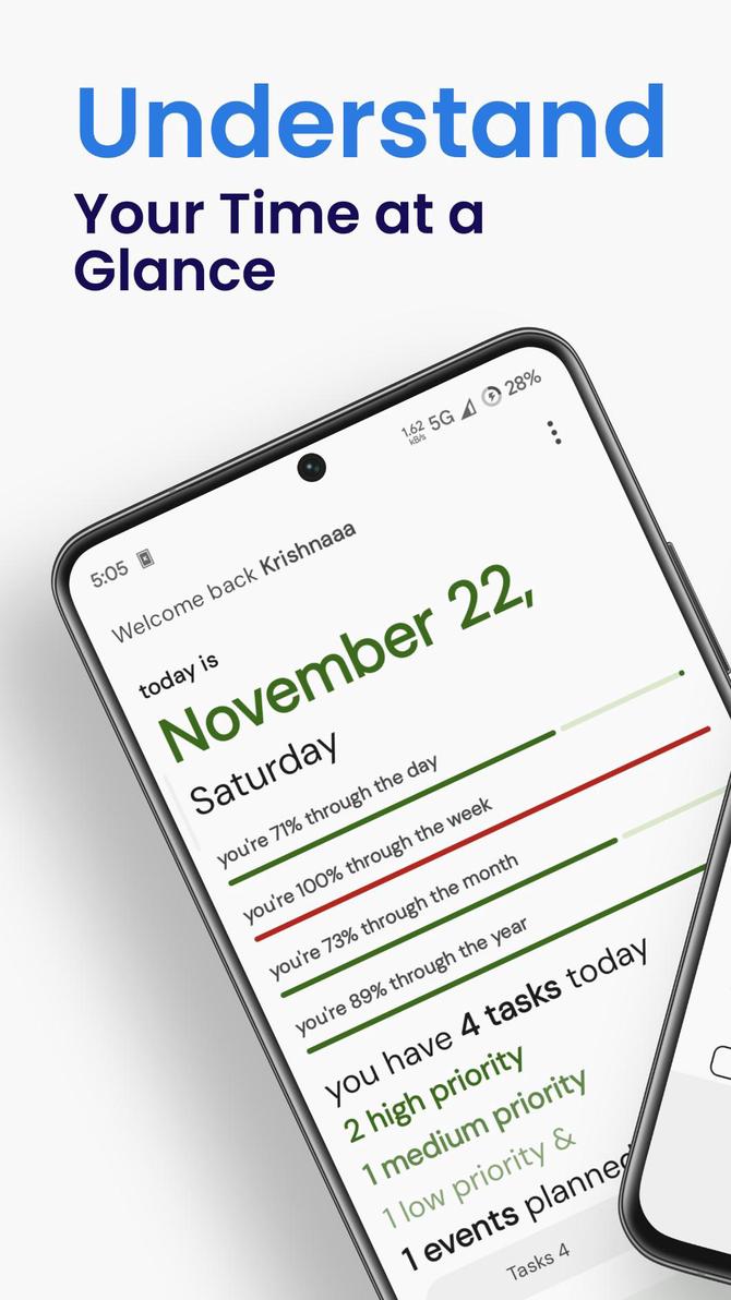 3. Instantly see how far you are into your day, week, month, or year.