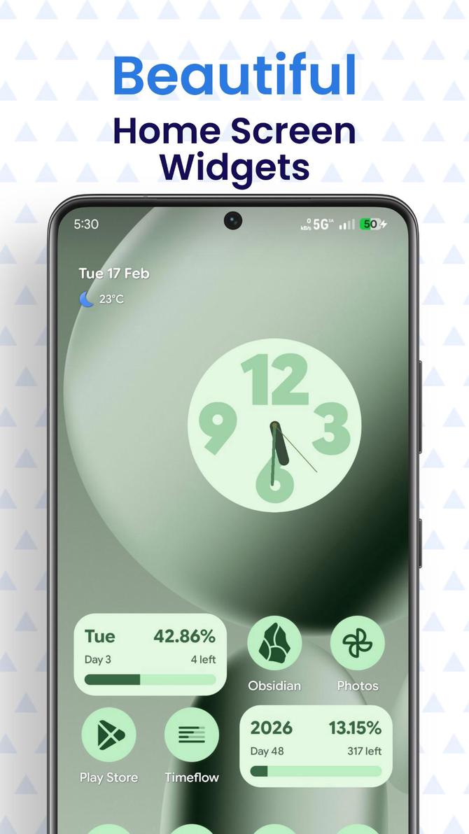 - Visual Life Bars: Track the passage of your day, week, month, and year with elegant Material 3 progress bars.