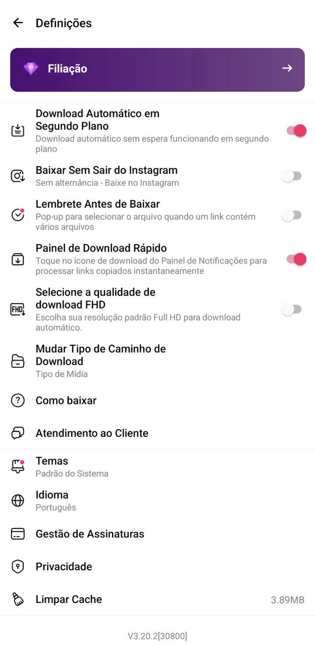 - Suporte para baixar videos do social media de perfis dos seus amsocial mediaos;