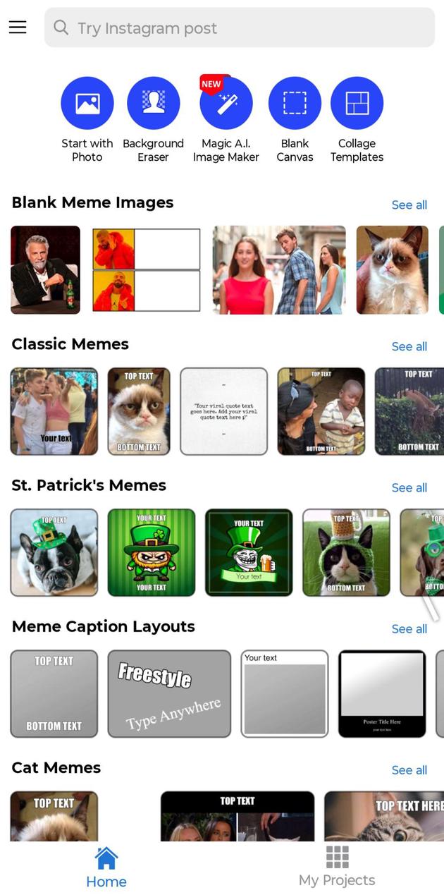 Crie e edite fotos engraçadas. Adicione adesivos, legendas, imagens de IA e crie colagens. Angry Cat? Bad Luck Brian? Drake? ~One does not simply~ say it quite like a meme. Create your own with Meme Maker Pro – the fastest and most intuitive meme and graphic design app you’ll ever use. No graphic design skills required – easily create static and video memes using the hottest and most popular meme templates! Add text to photos and videos, create collages, and browse 1000’s of stickers, fonts, emojis, and more to make your designs pop! Design original memes with the AI text to image maker! All-in-one image design tools mean there’s no limit to your creative vision! One-tap background removal, pre-designed templates, and custom text features make it easy to make your memes (and beyond) completely your own! As an added bonus, we don’t just start and stop with memes – Meme Maker Pro is also a video and image editor! Create your very own GIFs, logos, social media stories and even posters and invitations in a snap! It’s your one-stop shop for all things graphic design – without the complication. With just a few simple taps, your creations come to life! With millions of ways to design your very own memes, graphics, and video meme layouts, the possibilities are limitless. Browse 1000’s of trending templates, meme styles and graphic design art and make your posts stand out! KEEP CALM and MEME ON with Meme Maker Pro – the ultimate meme maker! Design your memes and rule the internet today! MEME MAKER PRO FEATURES MEME DESIGNER – MAKE MEMES, GIFS & MORE EASILY - Create memes from dozens of today’s most popular, trending templates - Customize your meme layouts for unlimited ways to express your meme genius - Add top and bottom text to your memes for that classic meme look in a snap! - Cats, stock images, Drake – find the hottest meme templates perfect for any situation - GIF galore! Add text and graphics to video memes and Tenor GIFs easily with just a few taps ALL-IN-ONE GRAPHIC DESIGN & MEME TOOL - One-tap background eraser makes it easy to edit your own photos into designs - Browse through 1000’s of meme stickers, design elements and more! - Add custom text to your designs or use our text bubbles to create your own meme watermark! - More than memes! Create collages, posters, invitations, photo grids and more in a snap! EASY TO USE, EASY TO SHARE - Design your own meme, video meme, GIF, and more and easily save or export them right from the app! - Say goodbye to complicated design tools! Make memes and designs on the go! - Our simple interface makes it easy to create your own memes and designs exactly how you want! - Share your designs on Twitter, Facebook, Instagram, TikTok & more!
