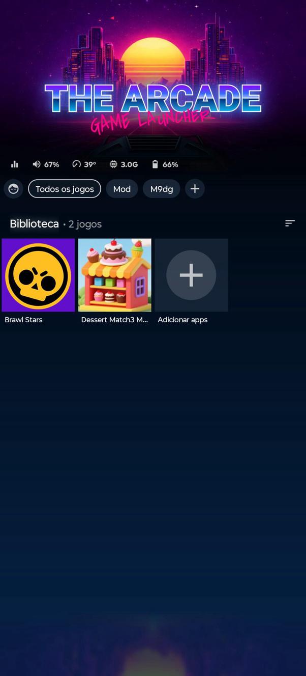 Hub de jogos independente com interface de usuário elegante para organizar seus jogos — sem anúncios, sem lixo eletrônico 🕹👾️🚀 THE ARCADE The Arcade is a stand-alone and immersive game hub and game launcher, without sponsored content, where you build your own personal space for gaming. It offers a polished, simple, and customizable interface inspired by the menus on gaming consoles. Your games are automatically organized into clean libraries, letting you clear the clutter from your home screen and enjoy your installed games and emulated ROMs through the entire gaming flow. All screenshots are captured on real devices using freely downloaded games from Google Play Store. Key features 🤖 Automatic game detection and organization All your games are instantly organized into one dedicated video game hub. ✨ Clean, console-style user interface Lightweight, simple, fast, and smooth console launcher with game controller support. 📢 No ads, no bloat, no junk Focused on great gaming — not ads or sponsored content. 🎮 Include any app in your gaming hub Add mobile games, social apps, emulator games, cloud gaming apps — any Play Store app. 📂 Game collections and app folders Create custom and expressive collections to organize, play, and showcase your games. 📊 Playtime insights Track your most played games and how much time you spend in each one. 🔄 Landscape & portrait modes The game launcher works seamlessly in both landscape and portrait modes. 🎨 Personalize your gaming hub Customize icon grids, cover art, backgrounds, labels, themes, sorting, and music. 👾 Emulator frontend Add emulator games and ROMs directly into your game collections using installed and supported console emulators. 🌡 Real-time performance monitoring Monitor device temperature, thermal throttling, CPU, RAM and battery usage to stay aware while gaming. 🛡 Built for privacy and battery-friendly use Requires minimal system resources, no internet connection, and protects your data. Emulated games and supported console emulators You can add video game ROMs into a mix of installed and emulated games in your library with compatible emulator apps (needs to be installed separately). The Arcade currently supports the following platforms/emulators: • PlayStation PSP (PPSSPP) • Nintendo Switch (Eden) • Game Boy Color & Advance (GBA.emu & GBC.emu) • Super Nintendo SNES (Snes9X EX+) • Nintendo NES (NES.emu) About game performance & "game boosters" The Arcade does not alter game performance, frame rates (FPS), hardware behavior or network latency. Claims made by many game booster apps are technically impossible! Instead, The Arcade improves your gaming experience through its console launcher interface, focused game hub organization, and ad-free design. Pre-installed game hubs & sponsored content If you are used to Samsung Gaming Hub (Game Hub), Xiaomi Game Turbo, Game Space, or Game Mode, you'll feel right at home — but now with a game hub and game launcher without ads or sponsored content, available on all Android devices with Google Play Store!