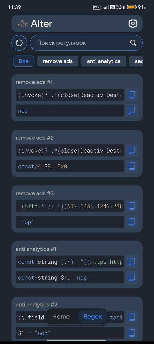 – Специализированный инструмент для управления регулярными выражениями, предназначенный для хранения, систематизации и применения регулярных выражений при моддинге – Генератор готового к использованию Smali-кода Alert-диалогов со встроенной логикой защиты
