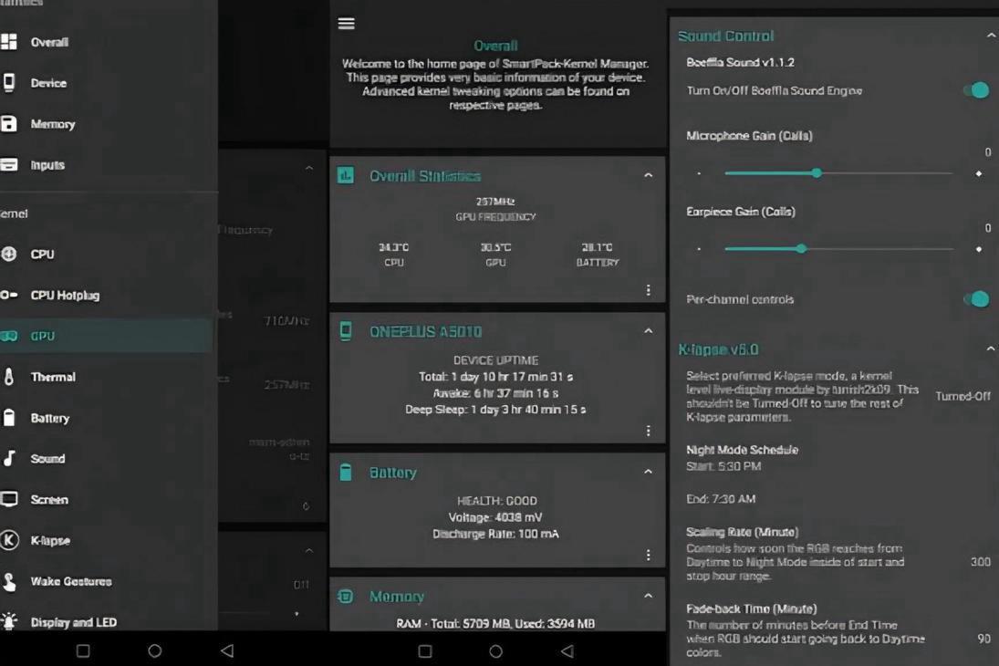 Strumento per la messa a punto dei kernel Gestione: Cpu Gpu Memory Entropy Varie Init.d Profili Need Root