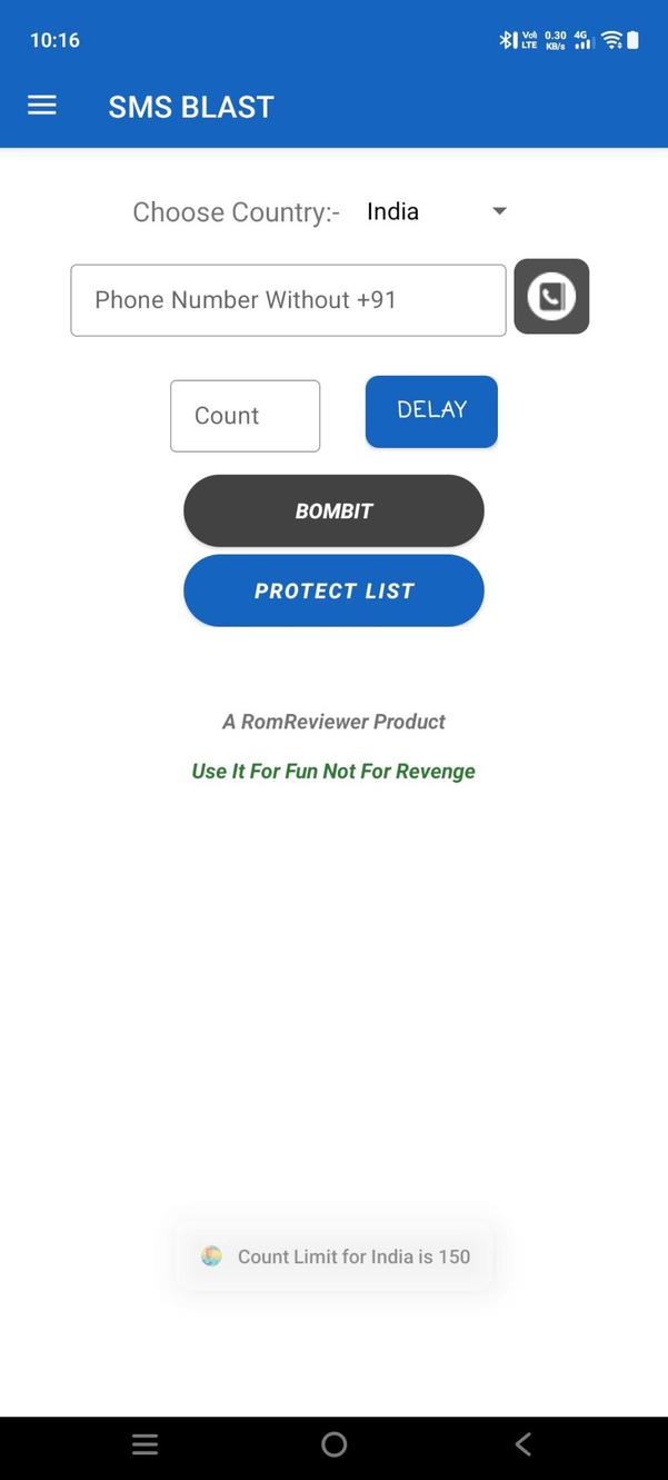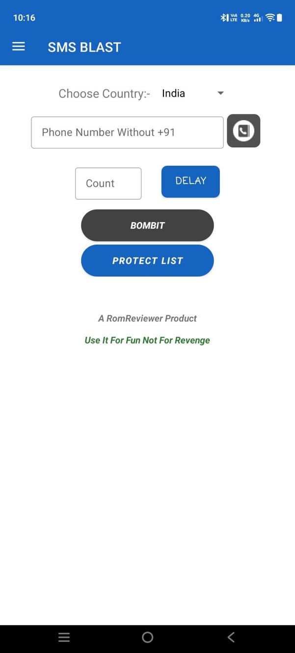 SMS Bomber Send unlimited free SMS using multiple APIs for maximum speed and delivery Call Bomber Make unlimited prank calls with adjustable frequency and speed settings Email Bomber Send multiple prank emails instantly to any email address for free Multi-Country Works in India, Nepal, Philippines, Pakistan, Bangladesh, and more