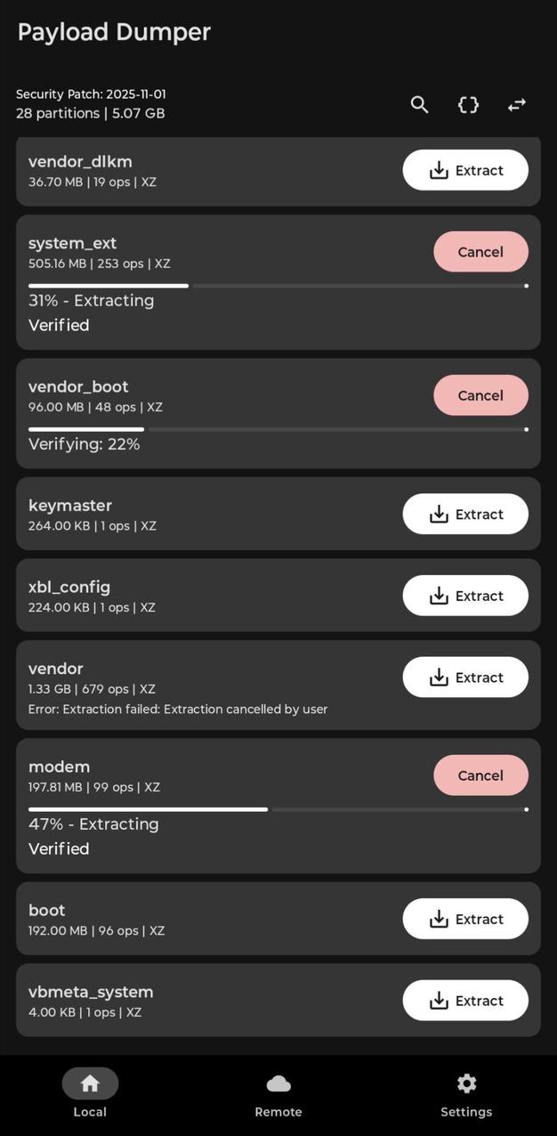 Supports payload.bin and OTA ZIP files