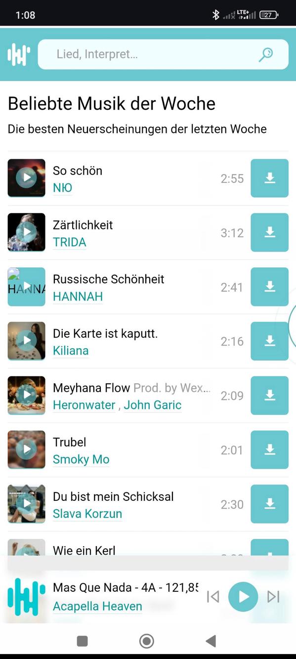 This app uses the huge audio library of the website lightaudio.ru for scraping audio files in high quality. Just one click for Playing or Downloading high quality MP3 (320kpbs) files in your standard web browser.