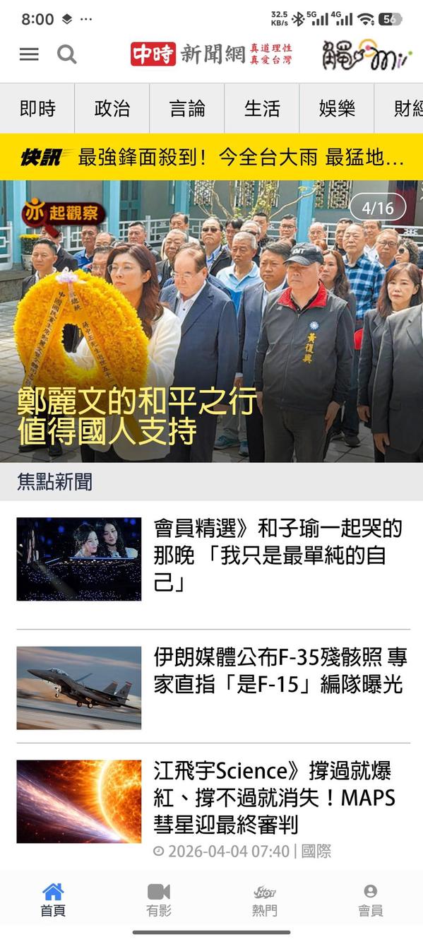 中時新聞網是台灣歷史最悠久的新聞網站,「台灣網站100強」評選第5名。內容來源包括中國時報、工商時報、旺報、時報周刊、中視各類型精選報導。