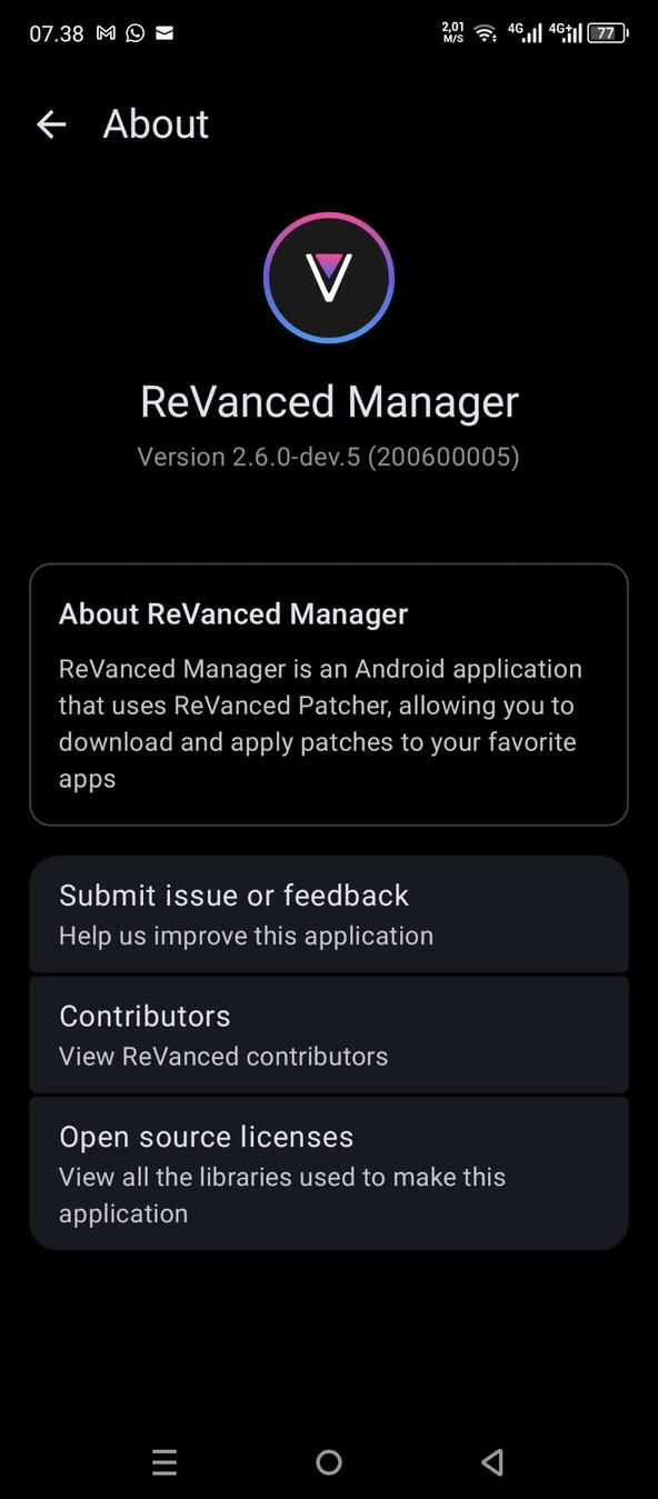 ReVanced Manager is an application that uses ReVanced Patcher to patch Android apps.