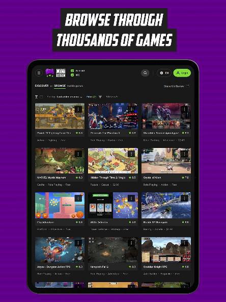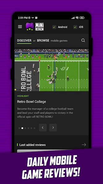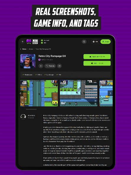 Purpose: A discovery platform for finding mobile game reviews, enabling searches, filters, and community-driven ratings.