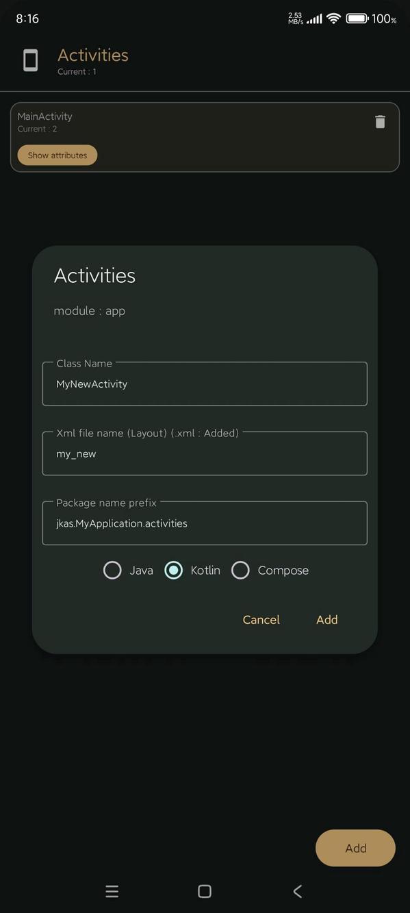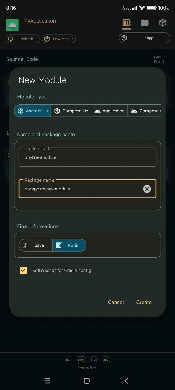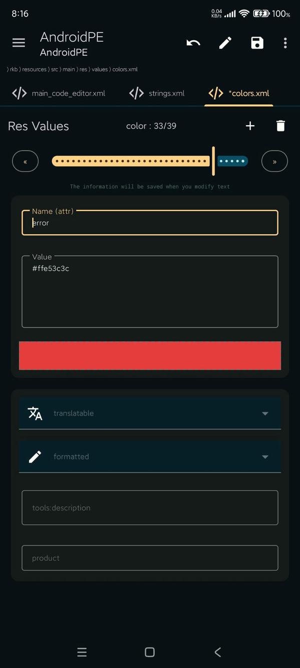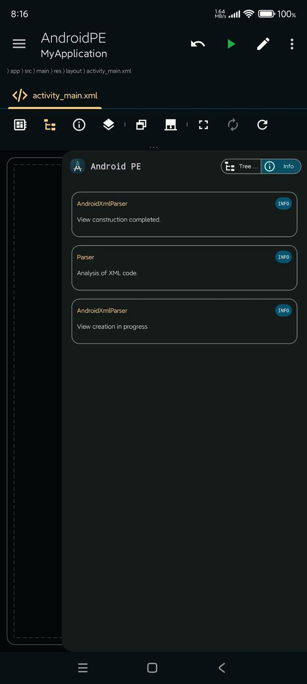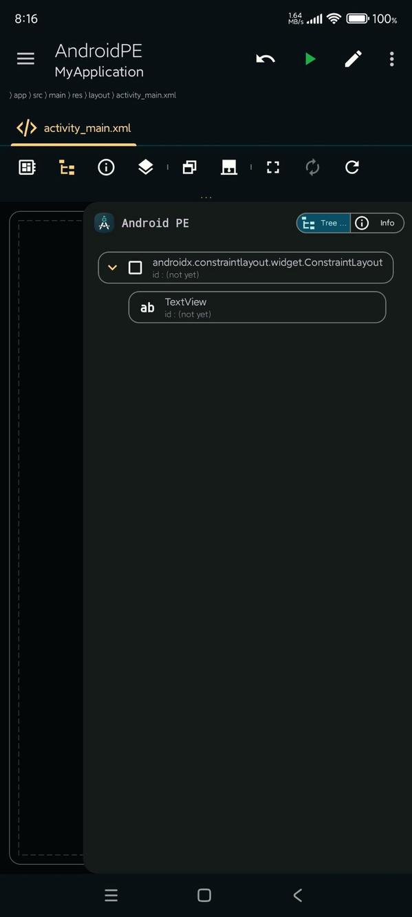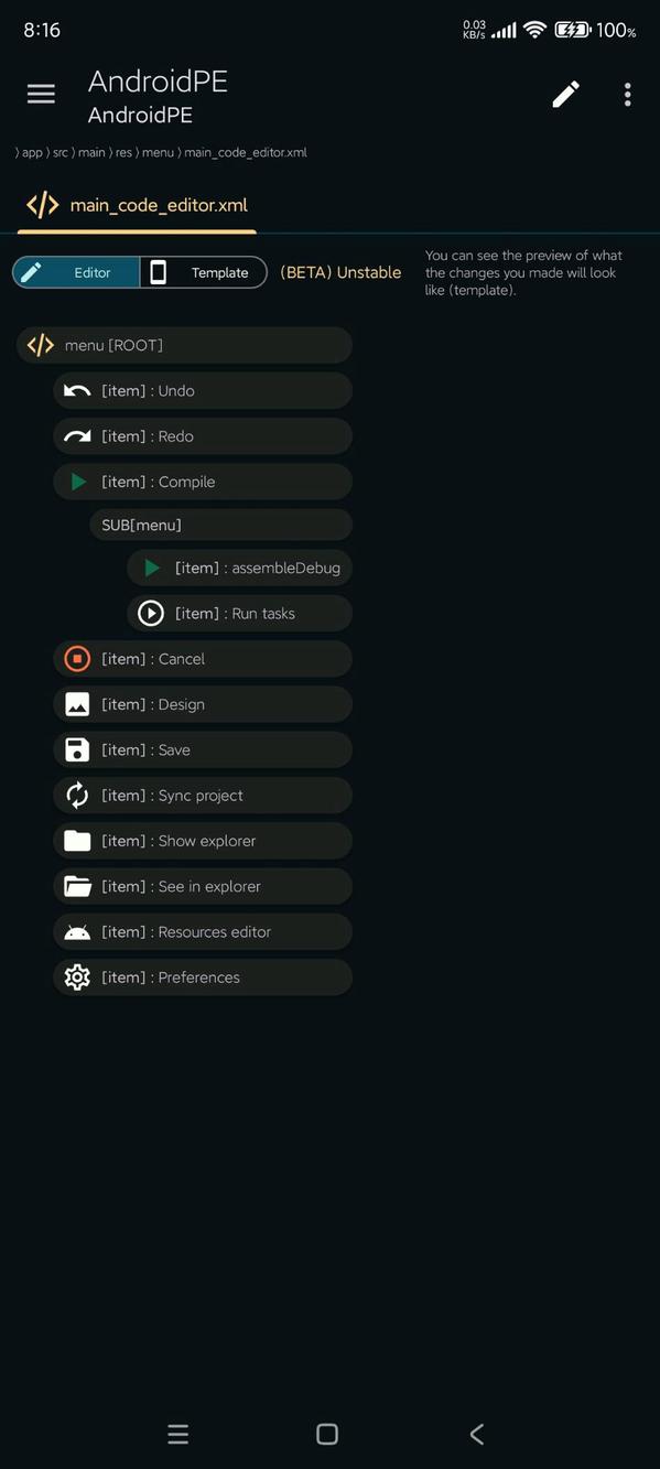AndroidPE (Project Editor) : Is an IDE that is both complementary to others and can also edit, preview, and build your projects directly from your mobile device.