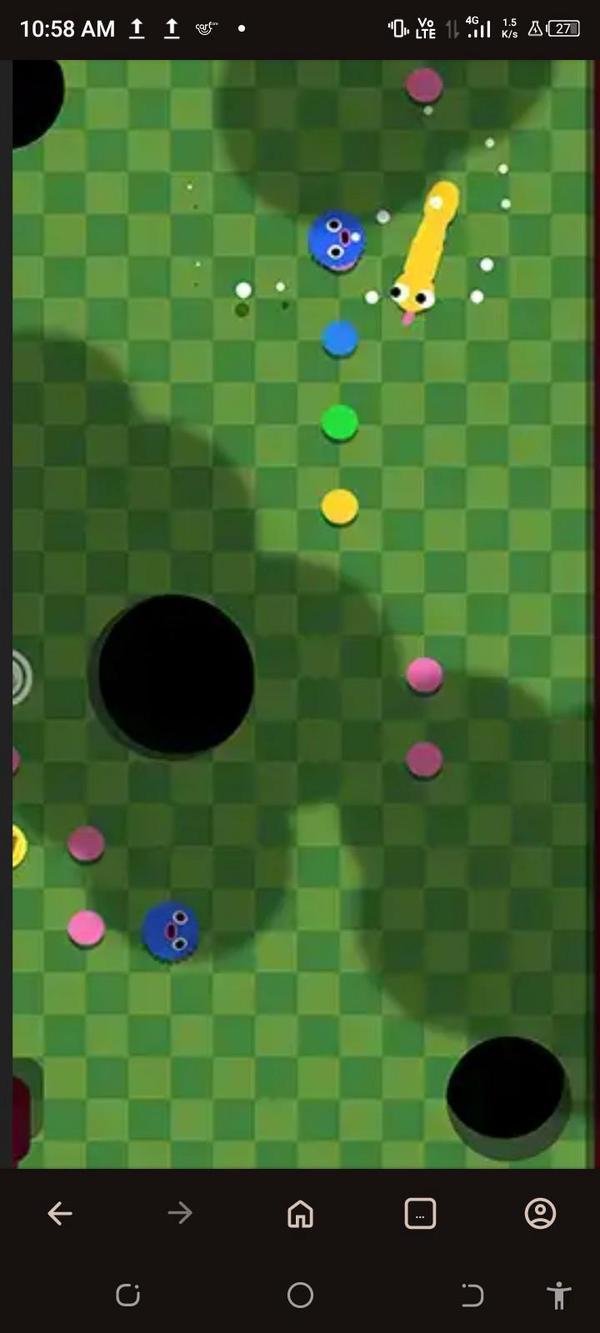 Wiggle You are a tiny worm. Well, not really, but in Wiggle you play as a cute little invertebrate who is fleeing from the flood and has to cover as much distance as possible. And as if life isn't hard enough already, there are many dangerous obstacles on your way. Avoid everything that slows you down which means don't bump into walls and steer clear of the fuzzy blue balls who so desperately need a friend that they stick to you and don't let go. In case you are unlucky though, you have to make tough decisions - it's all about survival, right?! To get rid of your new blue buddies, quickly use a ramp or drop them into holes while making sure to not fall into a hole yourself. Collect pink dots to recover stamina and pick up rainbow dots to recover even more stamina. Grab a shield to feel safe for a few seconds and if that still isn't enough action, you can dribble a soccer ball and pick up helpful stuff like coins, magnets or boosts. Unfortunately though, you can't escape fate, so try to make the best out of it and wiggle your little worm as far as you can to earn a high score!