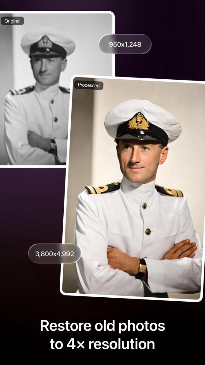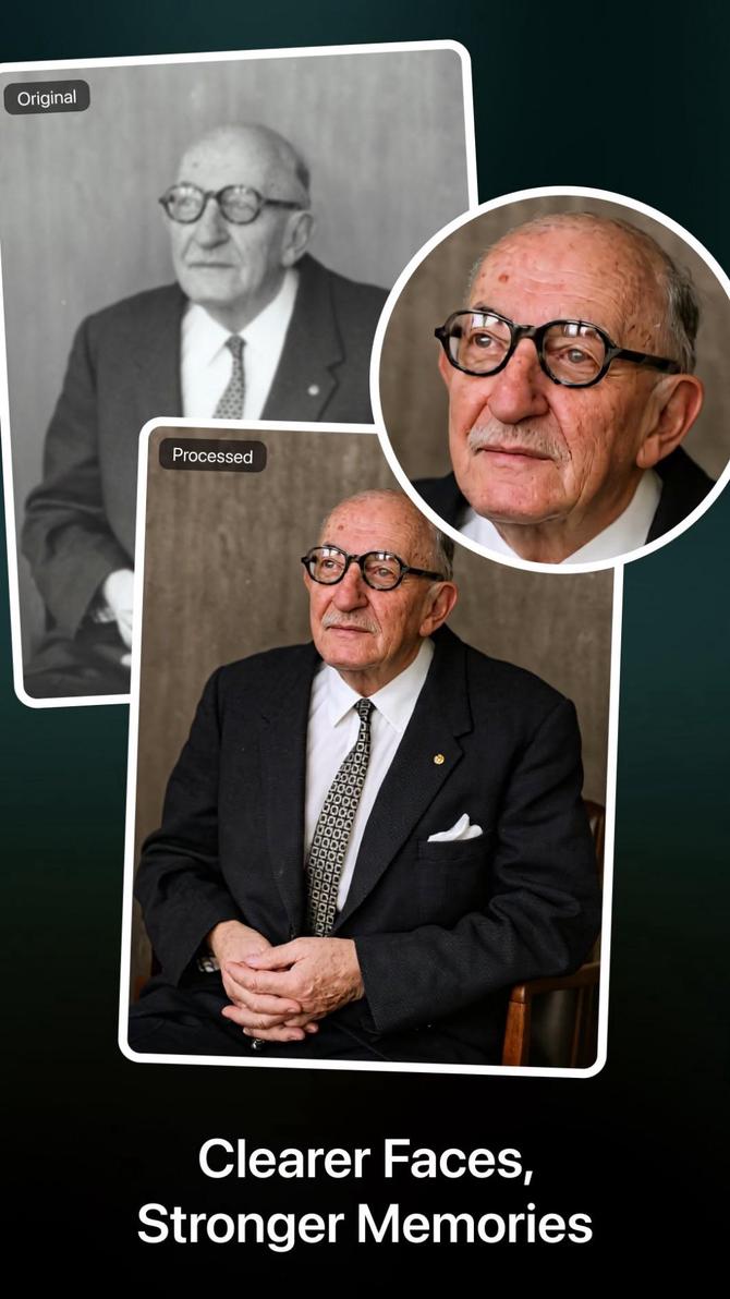 Restore family portraits, repair scratched photos, fix blurry faces, or enhance vintage photos — all in one tap.