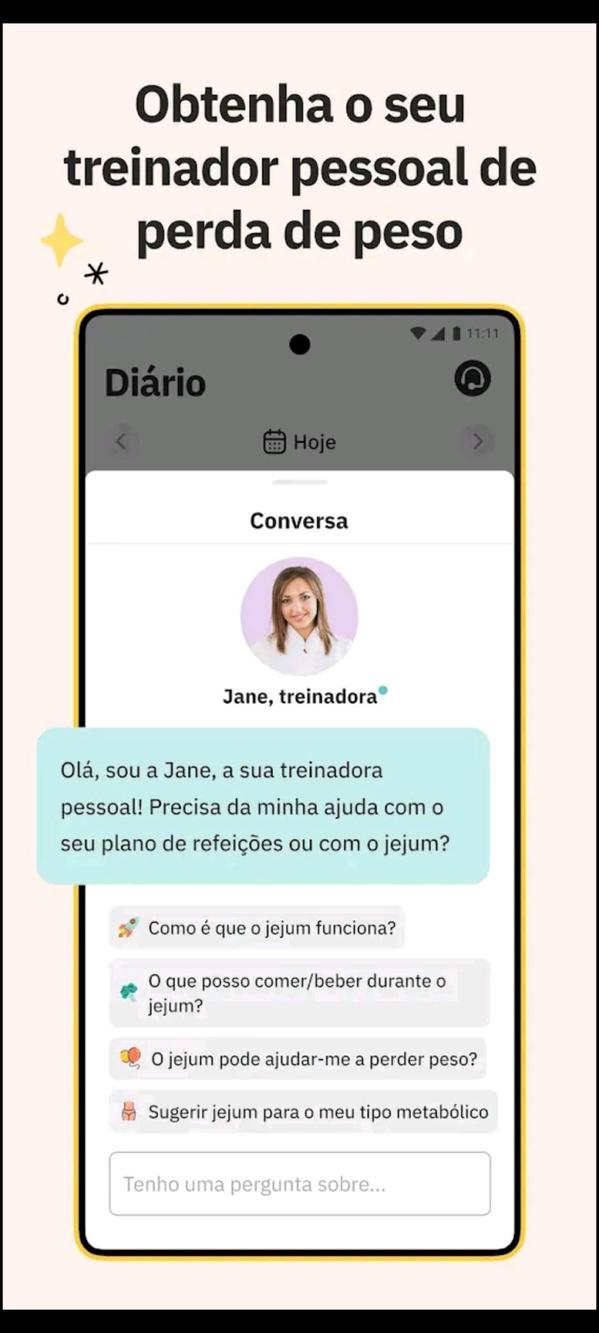 Personalize o seu plano de jejum com base nos seus objectivos, experiência e estilo de vida. Escolha a janela de jejum que funciona melhor para si e o plano adaptar-se-á;