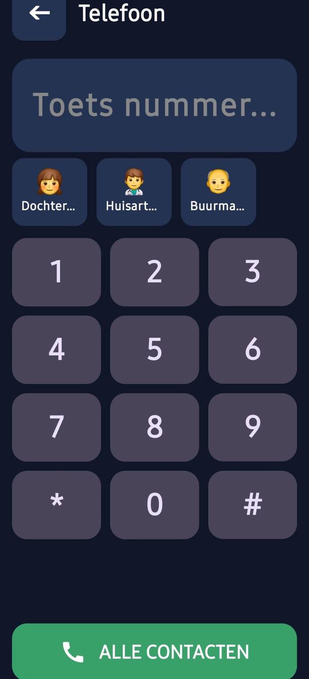 Удобный для пожилых людей ввод текста: большая кнопка для начала нового разговора с прямым доступом к сохраненным, защищенным контактам.