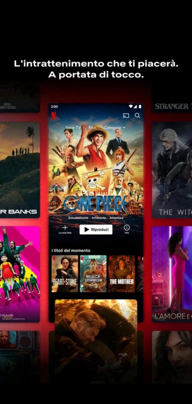• Aggiungiamo continuamente serie TV e Film. SFoglia i nuovi titoli o cerca i tuoi Favoriti, poi guardali direttamente dal tuo dispositivo. • Più titoli guardi, più semplice sarà per Netflix suggerire Film e serie TV che rispondono alle tue preferenze. • Goditi un'esperienza TV adatta ai più piccoli con un'offerta per tutta la Famiglia. • Guarda brevi anteprime delle nostre serie e Film. Rimani informato su nuovi episodi e uscite.