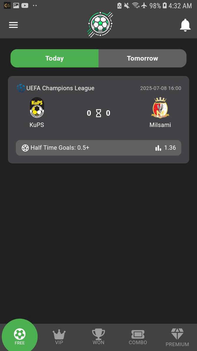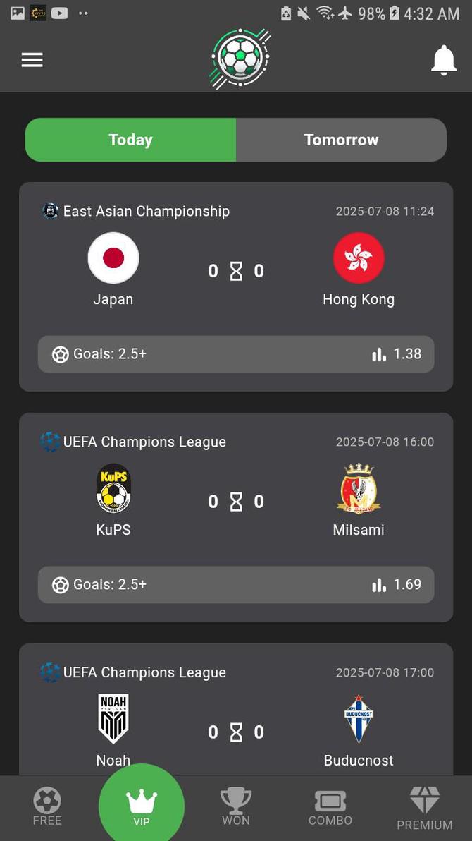 Reliable football tips! Discover expert match predictions. PredHub is a reliable and user-friendly mobile application that offers daily football and basketball predictions prepared by professional analysts. With Free, VIP, and Combo options, the app appeals to users of all levels. Our experienced team of expert analysts evaluates hundreds of matches across dozens of leagues every day to deliver the most accurate predictions. Each prediction is based on statistical data, player form, team performance, and in-game dynamics. Thanks to our continuously evolving analysis model, we aim to maintain a high success rate. PredHub provides not only football predictions but also basketball insights, offering a well-rounded and data-driven experience for sports followers. Each sport is approached with tailored strategies to make predictions more informed and effective. 🎯 Expert Predictions PredHub's predictions are prepared by a professional team that includes footballers, basketball analysts, coaches, and experts with field experience. Our team evaluates key factors such as player form, injuries, and pre-match data to deliver solid and realistic analysis. These predictions are not based on guesswork—they are data-driven, detailed, and trustworthy, helping users make informed decisions.