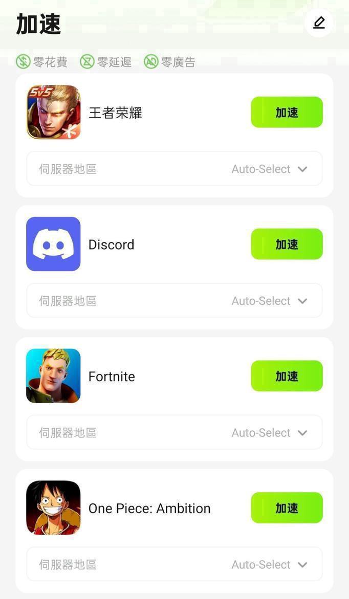 游戏免费加速器,高质量线路,稳定快速加速国内外手机游戏网络。