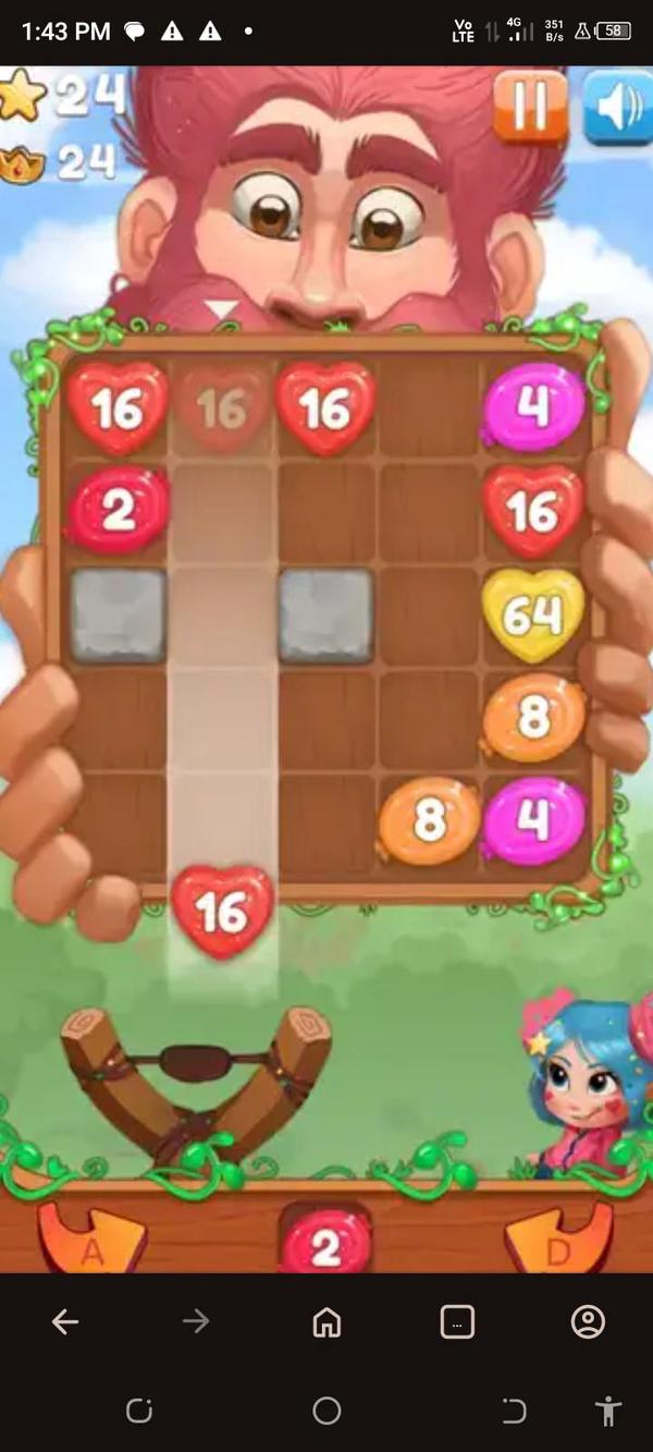 Giant 2048 Get ready for the sweetest AND biggest 2048 puzzle game ever created! Help Lilly feed her best friend the lovely giant with tasty candies. Use the slingshot to merge the candies with matching numbers into one big candy. Try to create huge combos by merging more than one candy at a time to feed even MORE candy. But watch out, rocks will appear on the field blocking the candies. They can easily be destroyed by merging candies beside them, but don't underestimate those solid blockers! So grab your slingshot and prepare for the greatest 2048 game of all time