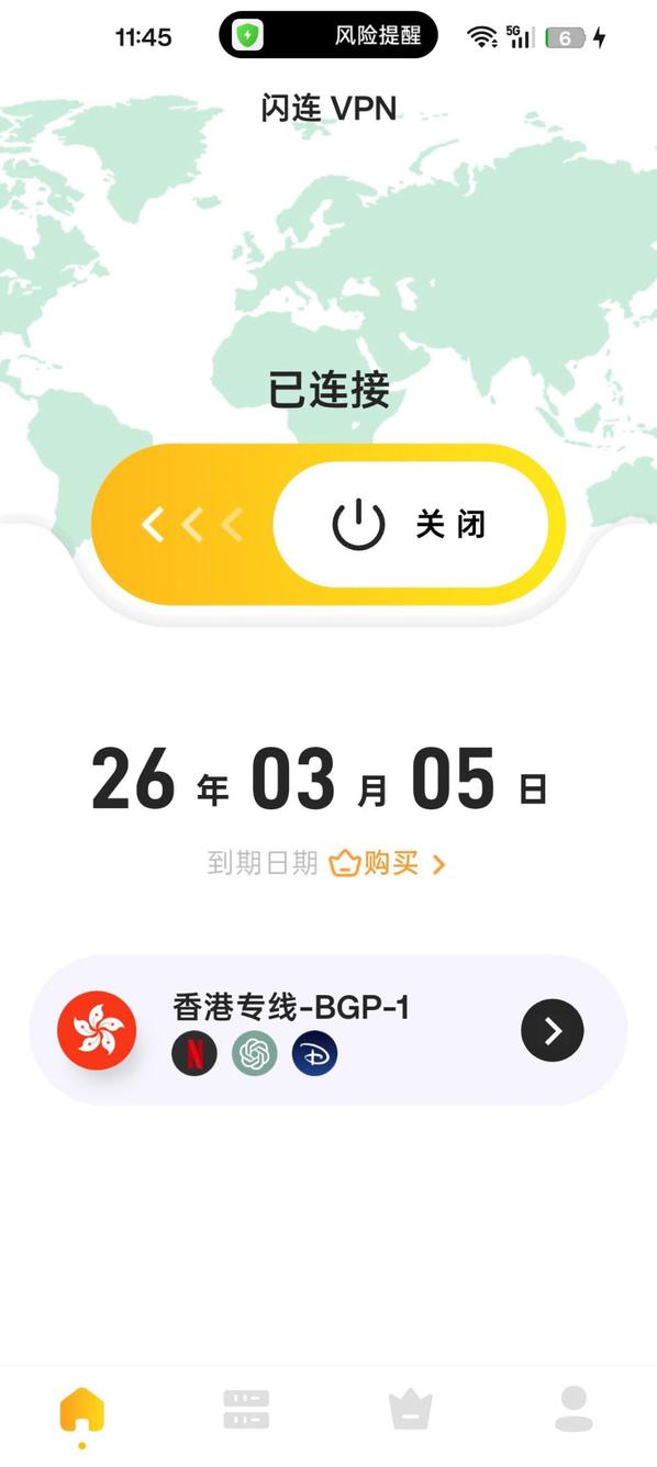 闪连VPN是一款VPN 工具,支持一键连接全球高速节点,访问被限制的应用和网站,助力流畅稳定上网。无流量限制,支持多协议和智能加速,适用于日常浏览、视频观看和社交应用连接等场景。速度非常快 比肩快连VPN
