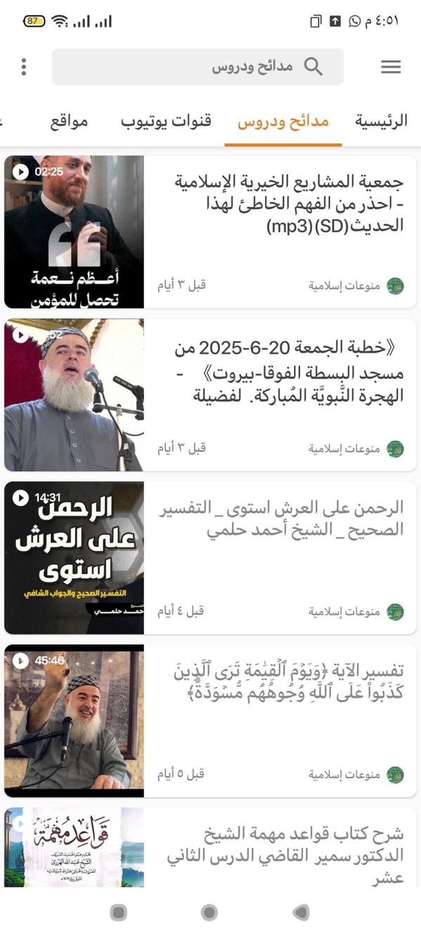 وفي التطبيق أيضًا متابعة بعض قنوات مشايخنا الأجلاء في اليوتيوب