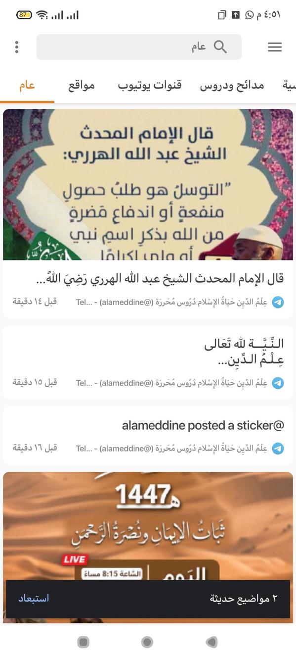•إضافة بعض قنوات التلغرام